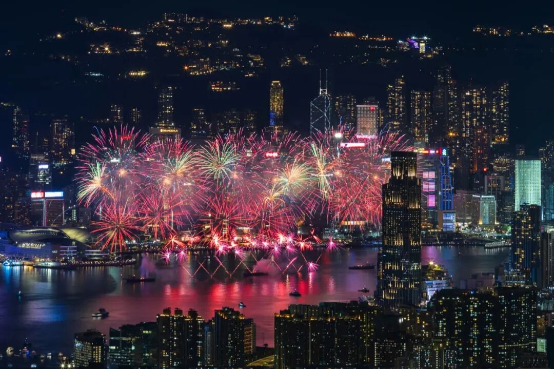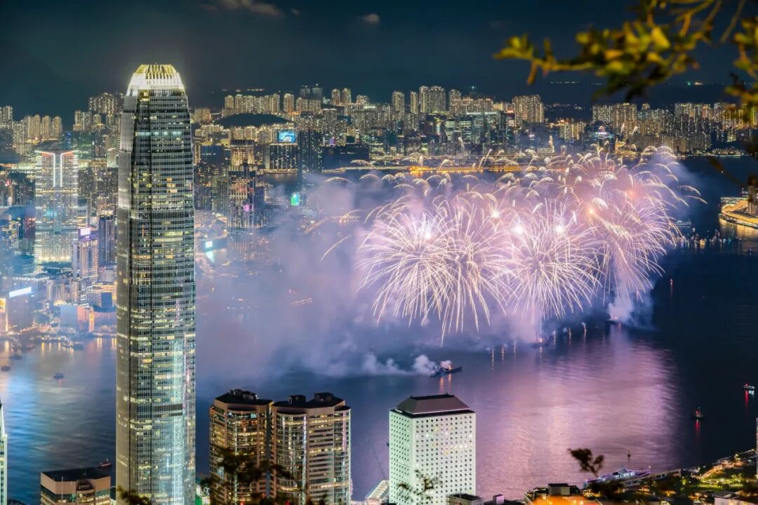 劃破維港夜空,祝願祖國富強昌盛、香港繁榮穩定。