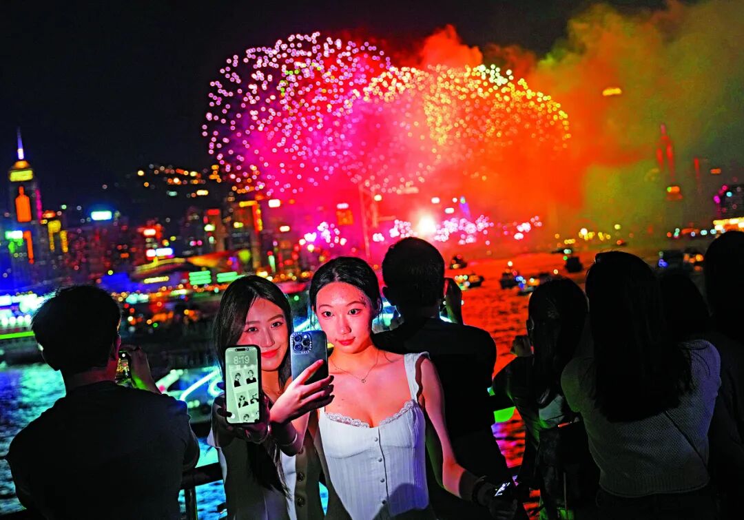 首次現場觀賞香港國慶煙花的廣州旅客王小姐表示,煙花匯演「壯觀又大氣」,她最喜愛壓軸一幕,上空滿載「中國紅」元素的煙花,伴隨《歌唱祖國》旋律綻放,讓她深切感受到濃厚的國慶氛圍,「看到祖國愈來愈強大,作為中國人特別自豪!」