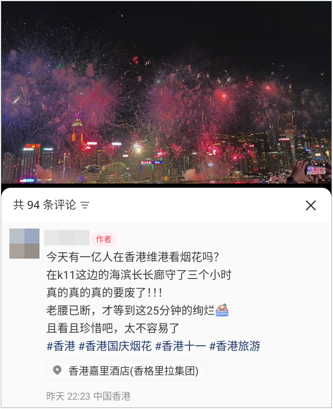 : 本文要點「喂,排隊先啦!」為給祖國慶生,各地的煙花匯演都「卷」起來了。昨晚維港的煙花,也太漂亮了吧!好看是好看,就是人實在太多了。網友被擠得發出哀嘆:是不是有一億人在維港看煙花?確實有大批旅客來港歡度 ...