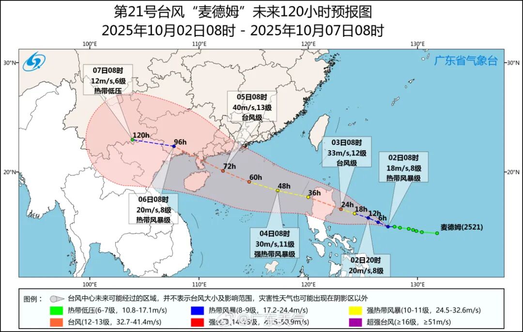 强化海上防风措施。根据通知,经综合会商决定,珠江口以西(含珠海)海域于10月3日18时前落实防台风“六个百分百”措施,所有海上作业渔船全部回港避风,所有渔排养殖和海洋牧场人员全部上岸避险,海上风电施工平台人员全部撤离,海钓船、潜水等休闲船艇和乡镇船艇等禁止出海;滨海景区、跨海航线根据情况适时关停。珠江口以东海域海上作业渔船密切关注台风路径变化,加强防风措施,做好随时回撤准备。