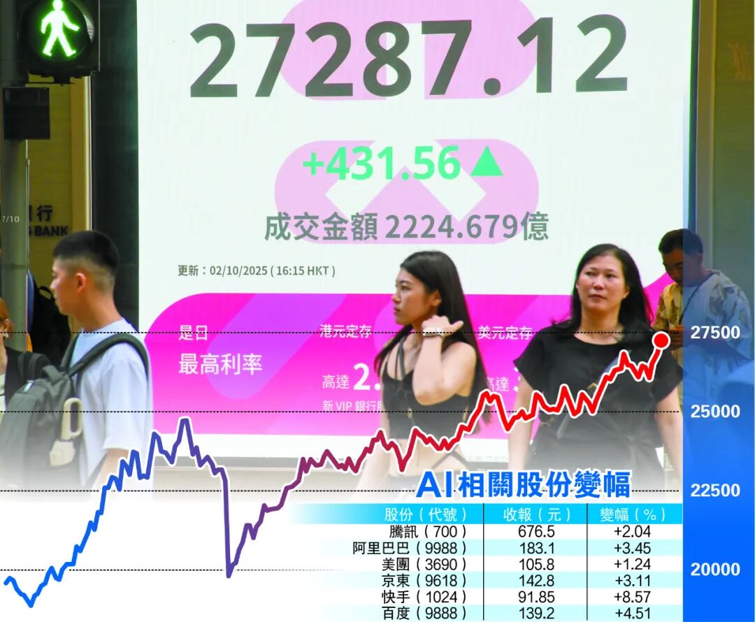至于后市,有分析认为,市场憧憬长假后内地或有利好公布,加上美国减息预期升温,而港股估值低等都吸引资金持续流入,料恒指有望上试28000点。