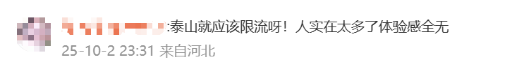 另据极目新闻报道,昨天(10月2日),有多名爬泰山的游客发视频称,国庆长假期间来登山的人非常多,10月1日夜间到2日白天,泰山景区下起了小雨,并伴有大风天气,夜间温度也很低。很多游客躲在山上厕所,或者收费的饭店内躲雨过夜。第二天早上,雨还在下,游客也没有看到日出。