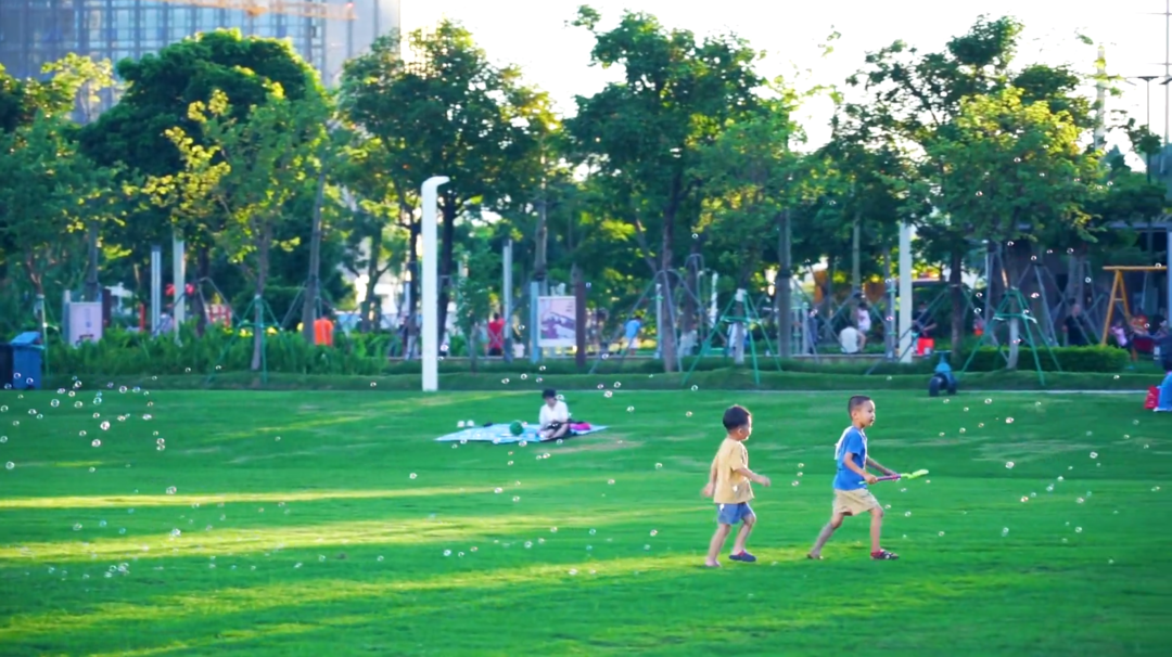 开阔的草坪与壮观的城景交融,