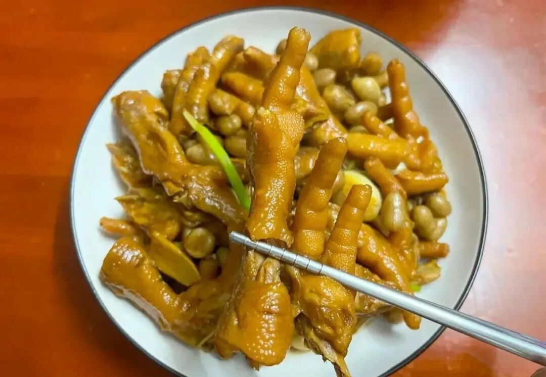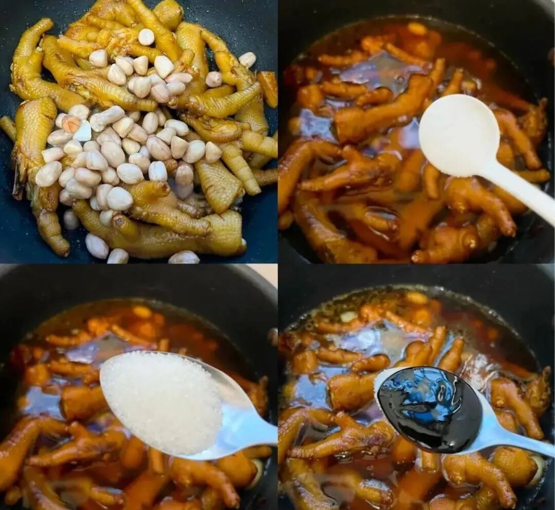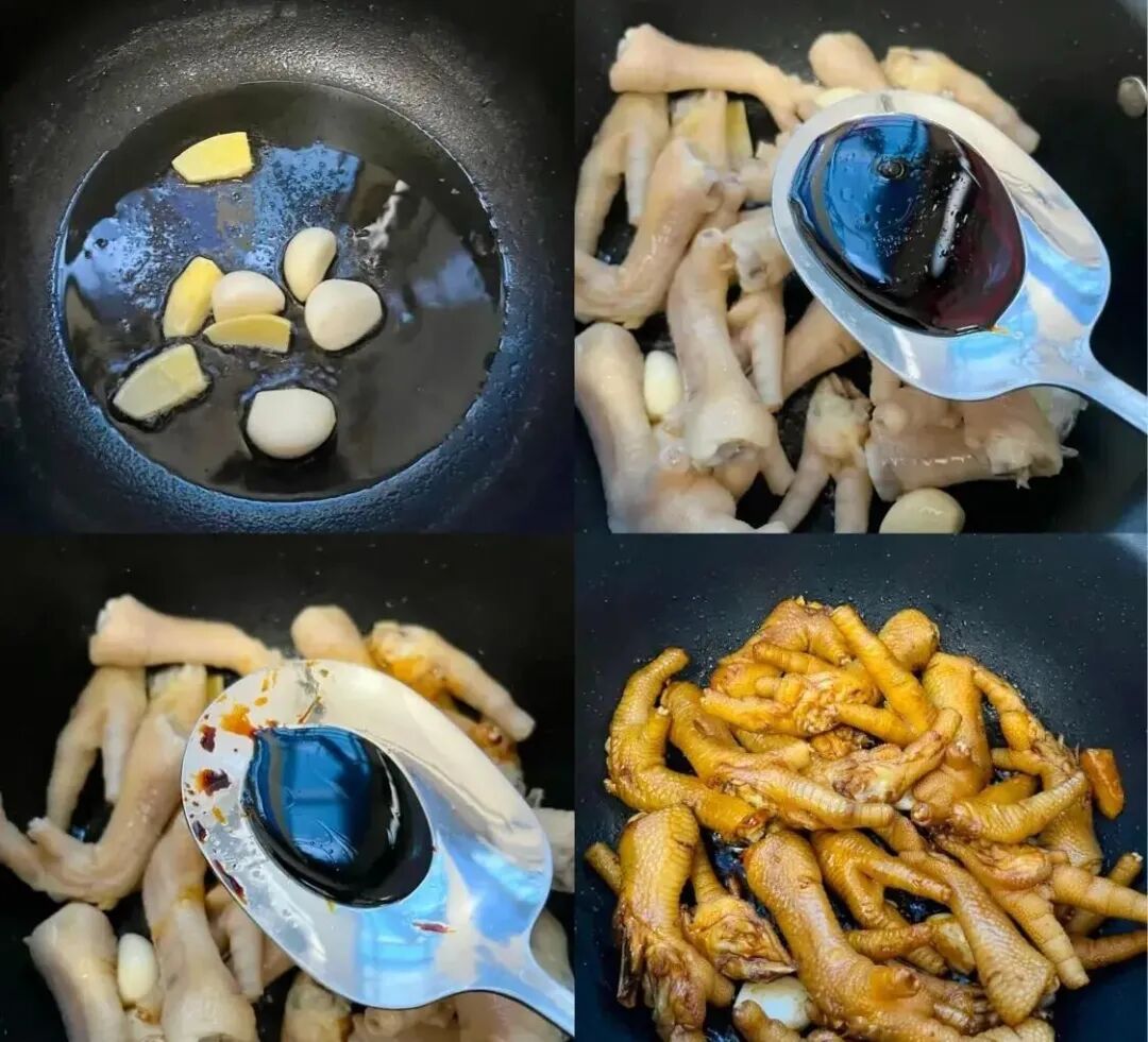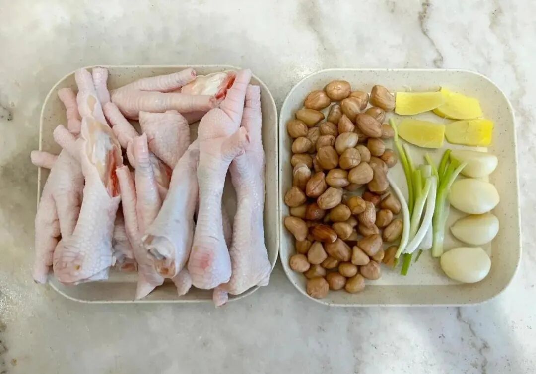 鸡脚一开为二冷水下锅加料酒焯水后洗净