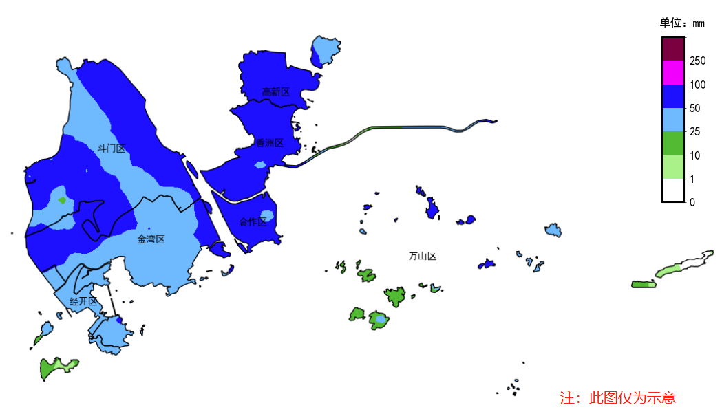 受其外围螺旋雨带的影响,昨天夜间至今天15时,我市出现了明显降雨,降雨主要集中在香洲区和高新区。