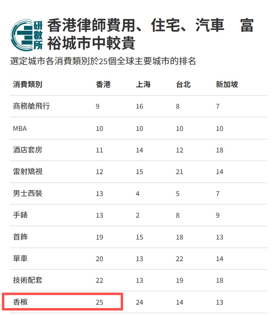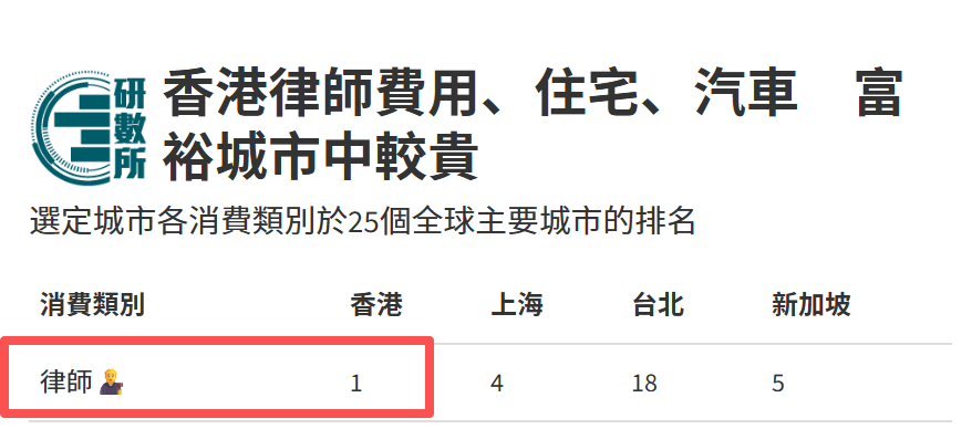 报告追踪20项代表高净值人士生活的商品与服务,令人意外的是,最贵的不是住房,也不是汽车,而是律师服务费! (图源:港媒)