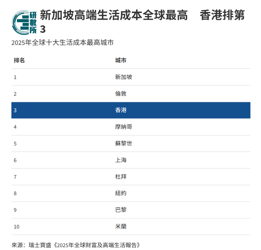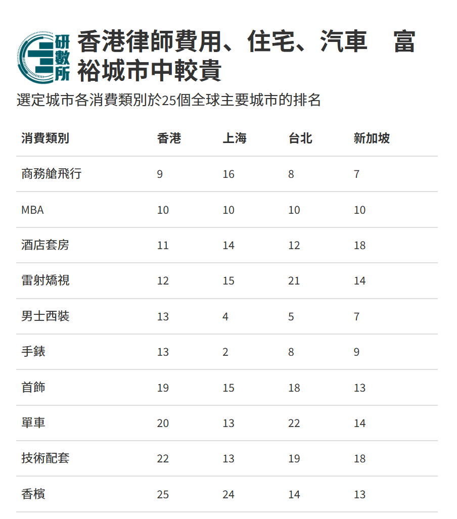 比起去年,香港的指数排名下降一位,被伦敦超越,但仍位列前三,在亚太区域中,香港依旧属于最昂贵的城市之一,仅次于新加坡。