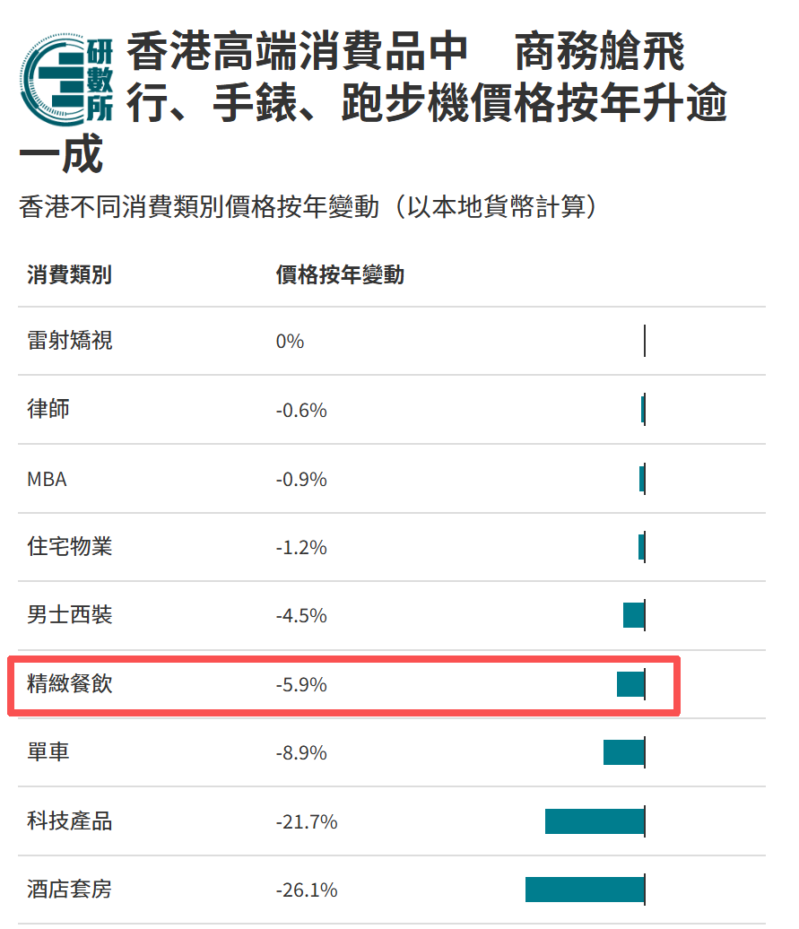 大家都知道香港的吃喝相对较贵,但香港“精致餐饮”的价格在2024-2025年呈下跌趋势,跌幅达5.9%。 (图源:港媒)