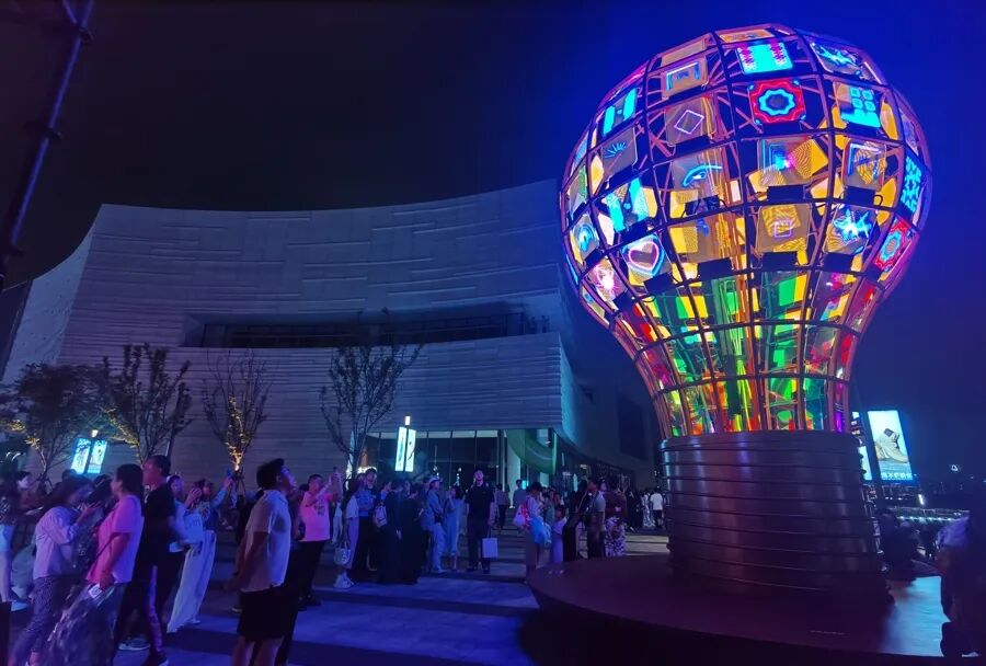 再次回到徐汇西岸,7米高的“亚”字牌“大灯泡”令人印象深刻,80块LED显示屏灵活变换图案、播放动画,不仅拍照出片,还能跟游客互动,收获众多粉丝。