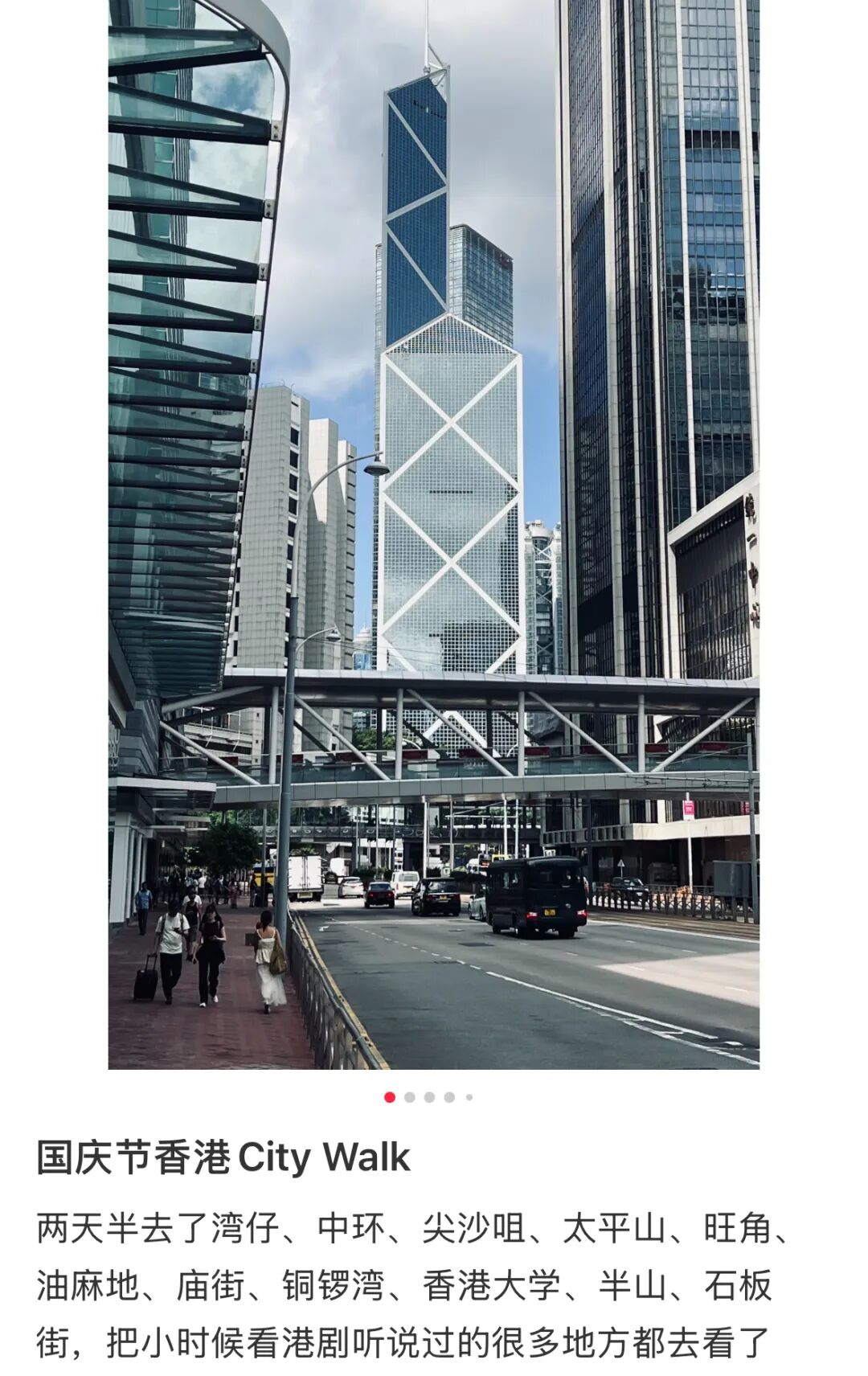 有旅客在接受採訪時表示,此次國慶假期來港主要以休閒遊為主,「走到哪玩到哪」,但在隨性行程中,「落日飛車」是唯一的必去打卡體驗,「小紅書上很多人介紹落日飛車,看圖片覺得夜景非常驚艷!」