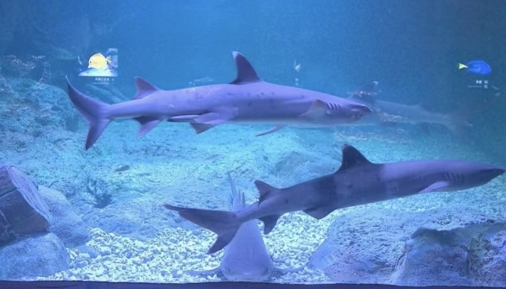 沿着海底隧道登上二层“珊瑚秘境”,光线穿透清澈水体,洒落在脑珊瑚、鹿角珊瑚之间,宛如打开了童话中的珍宝匣,连沙粒都闪烁着微光。“水母宫殿”更是一场视觉魔术——灯光流转间,水母如幻似真,翩然起舞,站在玻璃前的人也仿佛沉入深海,成为这静谧世界的一部分。