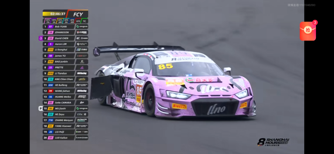 此时,上海8小时耐力赛已进行了三分之二赛程。主持人提到,长时间的比赛,需要车手用大量体力和专注度去完成驾驶。