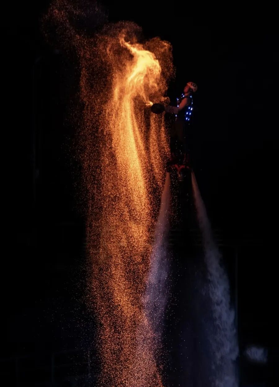 “本以为白天的滑水国旗表演、水上飞人编队表演已经够精彩了,没想到晚上的水上火壶效果更绝。”市民邹先生表示,表演巧妙地将火与水这两种看似矛盾的元素融合在一起,表演者通过一系列高难度动作和精准操控,让火壶在空中翻飞、旋转,同时喷射出绚丽的火焰,感染力十足。“之前只在网上看过视频,这次在家门口赶上了现场表演,特别开心。”