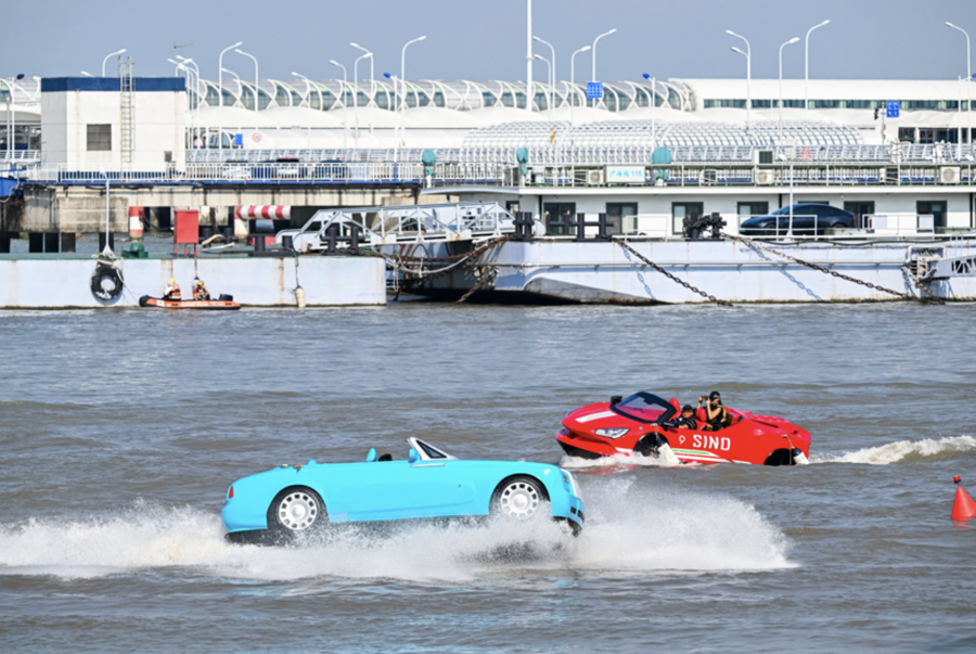 “水上汽车”飞驰。 受访者供图