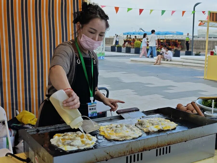 10月8日晚,美食节的最后一夜,张莺还守在蚵仔煎摊位。尽管已经累到嗓音沙哑,她还是坚持“站好最后一班岗”。首次来到宝山滨江,张莺觉得“战绩不俗”。40块钱一份的蚵仔煎,每天要卖出100多份,人最多的两天,备货晚上6点多就沽清了。