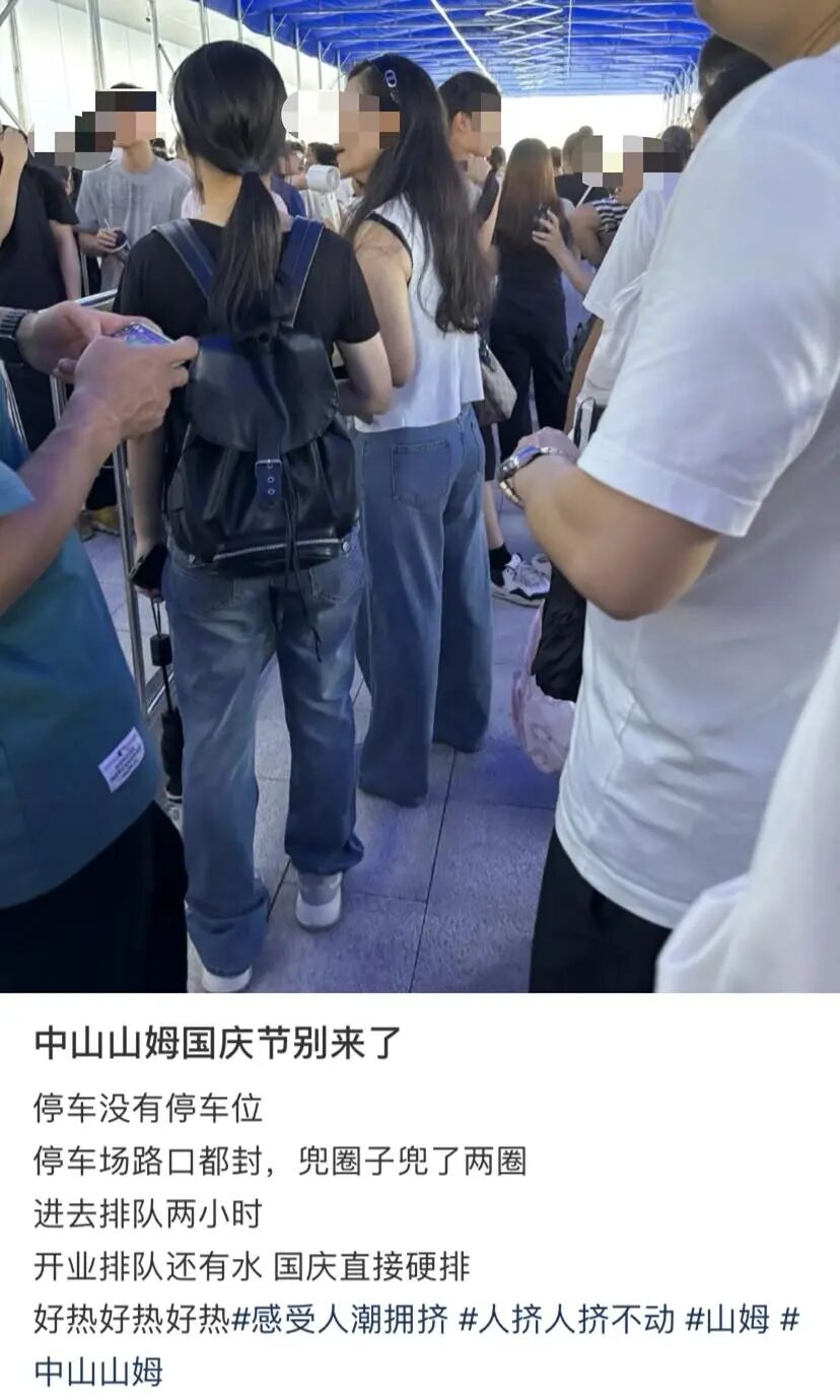 中山的山姆店更是被网友劝“别来了”,车多到连停车路口都封了,兜圈找车位停完车后,进去场内还要排队两个小时,相当折腾。