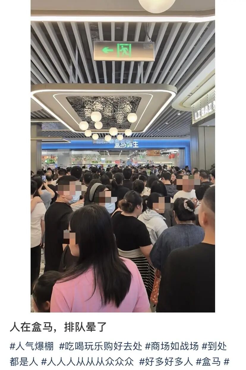 江苏宿迁的盒马门店更是被网友形容“排队排晕了”。