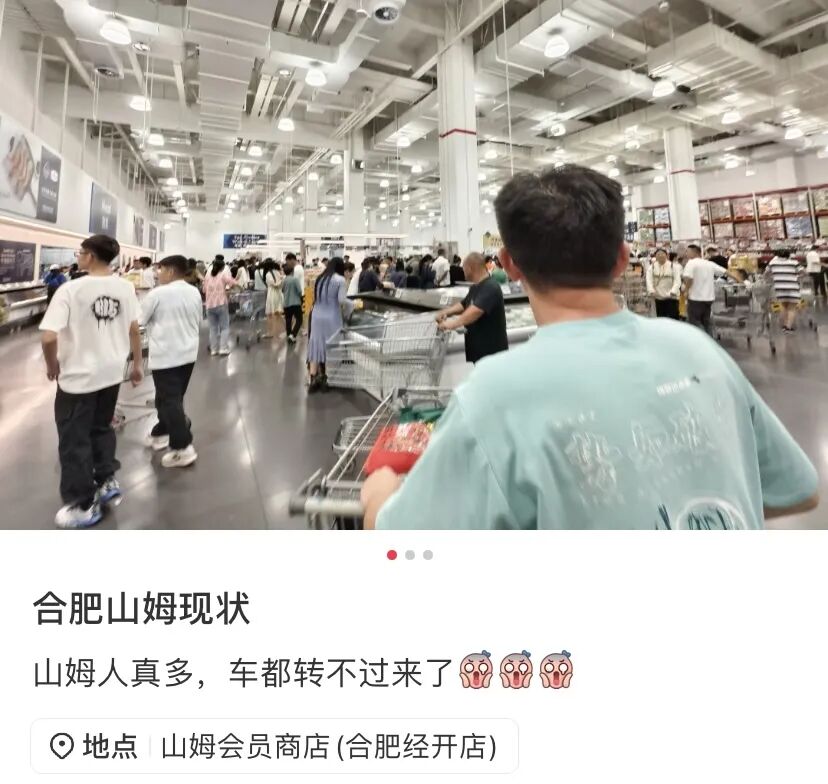 合肥山姆店“人多到车都转不过来”。