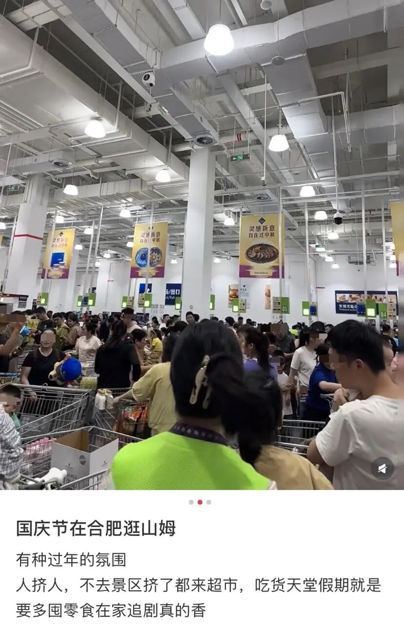 往年国庆的拥堵地图里,高速收费站、景区检票口、高铁站出口才是“重灾区”,可今年竟在胖东来、永辉、山姆等商超门前形成“春运式人潮”。
