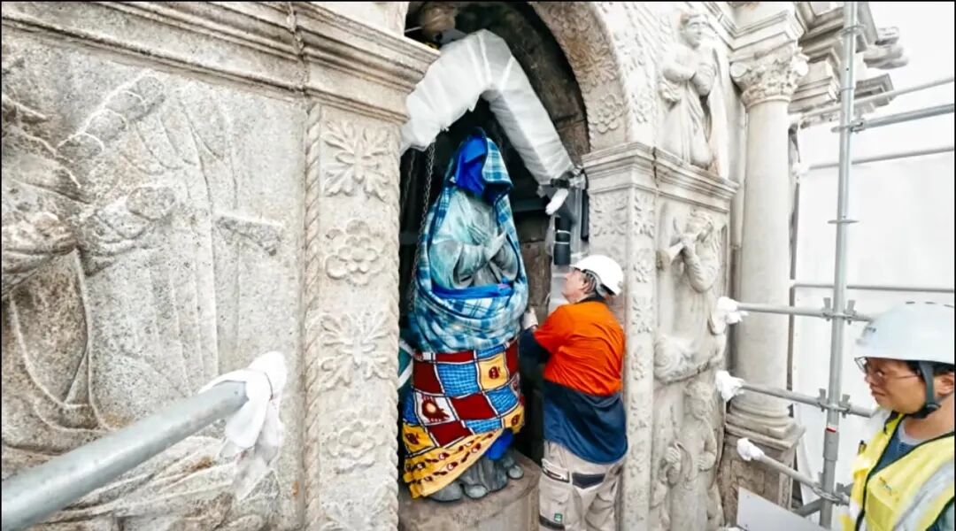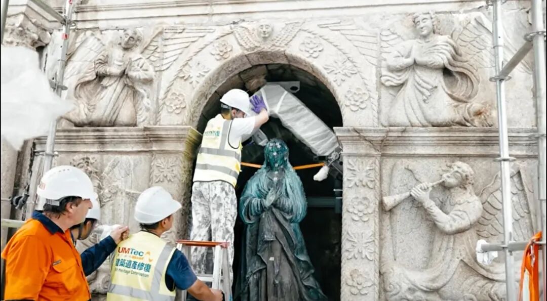 自今年初起分三个阶段对大三巴牌坊的七个铜像进行整体修复,并已于今年6月份完成第三层圣母铜像及石基座的修复及加固工作。