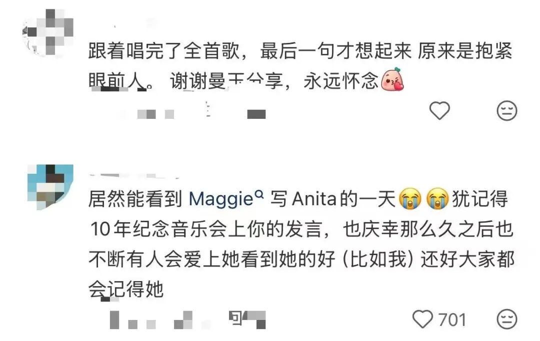 她不单是香港最伟大的女歌手,更是我永远的好朋友Anita。