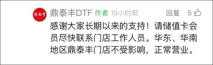 当时官方称,华东、华南地区鼎泰丰门店不受影响,正常营业。