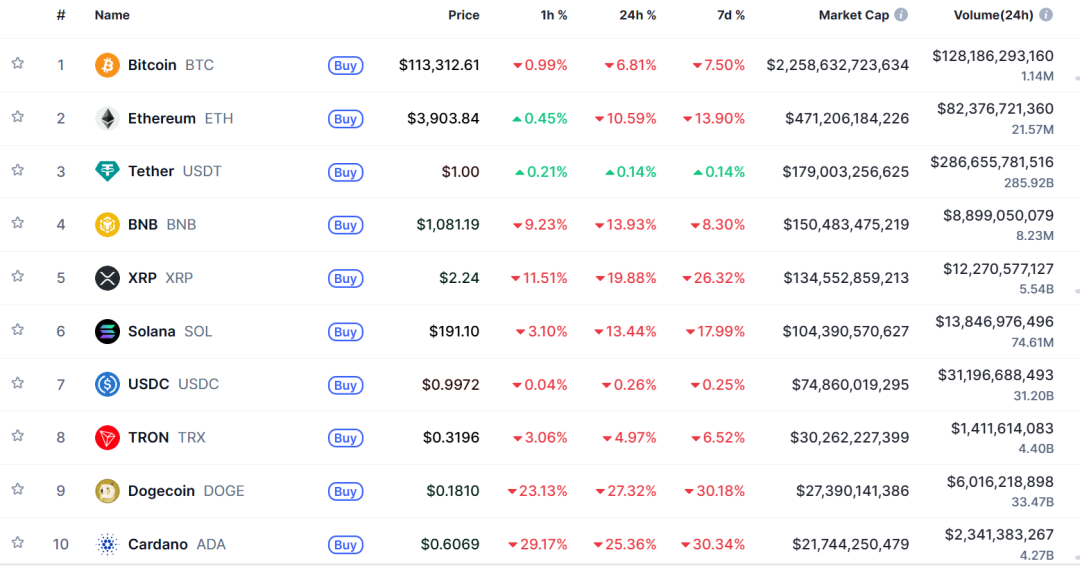10月11日凌晨,加密货币市场集体暴跌,比特币一度跌超13%,失守11万美元关口,最新报113700美元/枚。 周五,规模较小、流动性较差的代币受到的冲击更大。以太币一度暴跌逾17%,瑞波币和狗狗币则更是暴跌逾30%。