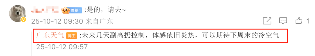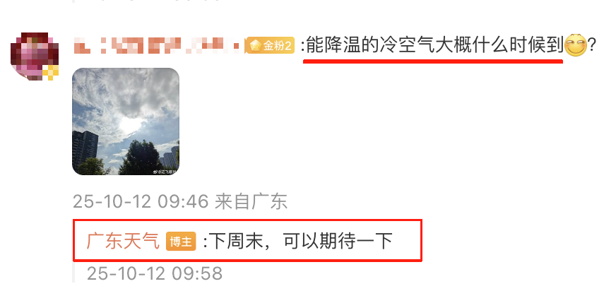 广东天气”微博 在回复网友留言时也表示 未来几天是等不到降温了