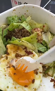 10月13日,浙江台州一网友发布视频,画面中女子用叉子戳着碗里的荷包蛋,没想到鸡蛋却坚硬如石,对此网友纷纷留言调侃,莫不是商家把模型当作商品做了出去,随后潇湘晨报记者联系到视频发布者何女士,何女士告诉记者,自己是12日下午购买的这一份减脂餐。 △网友视频画面中硬如石头的鸡蛋。