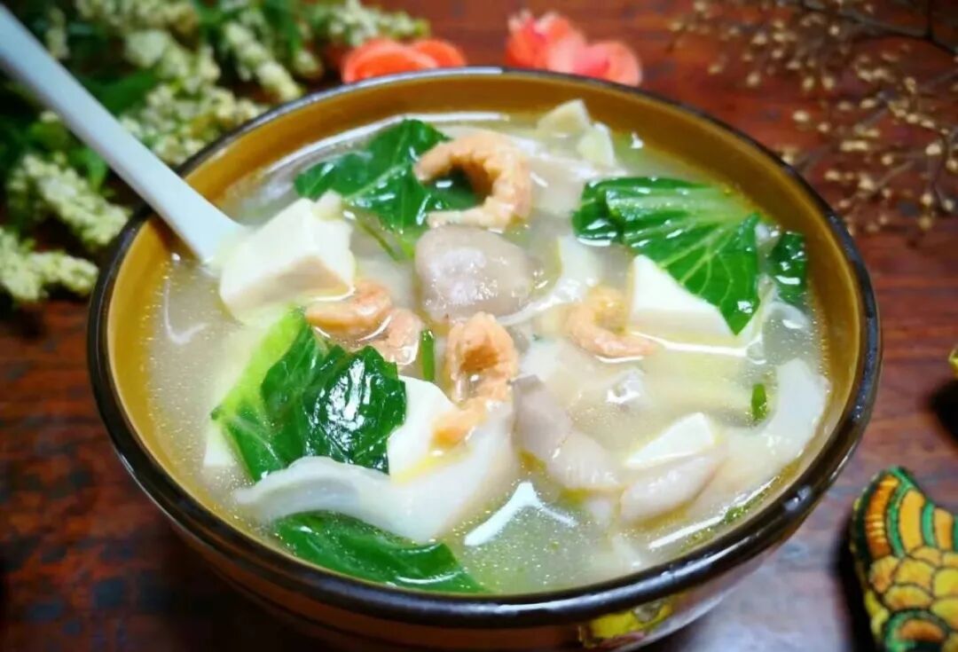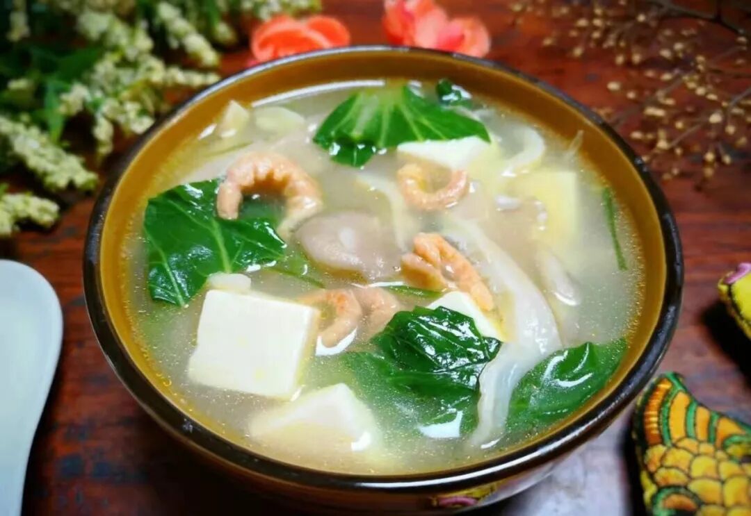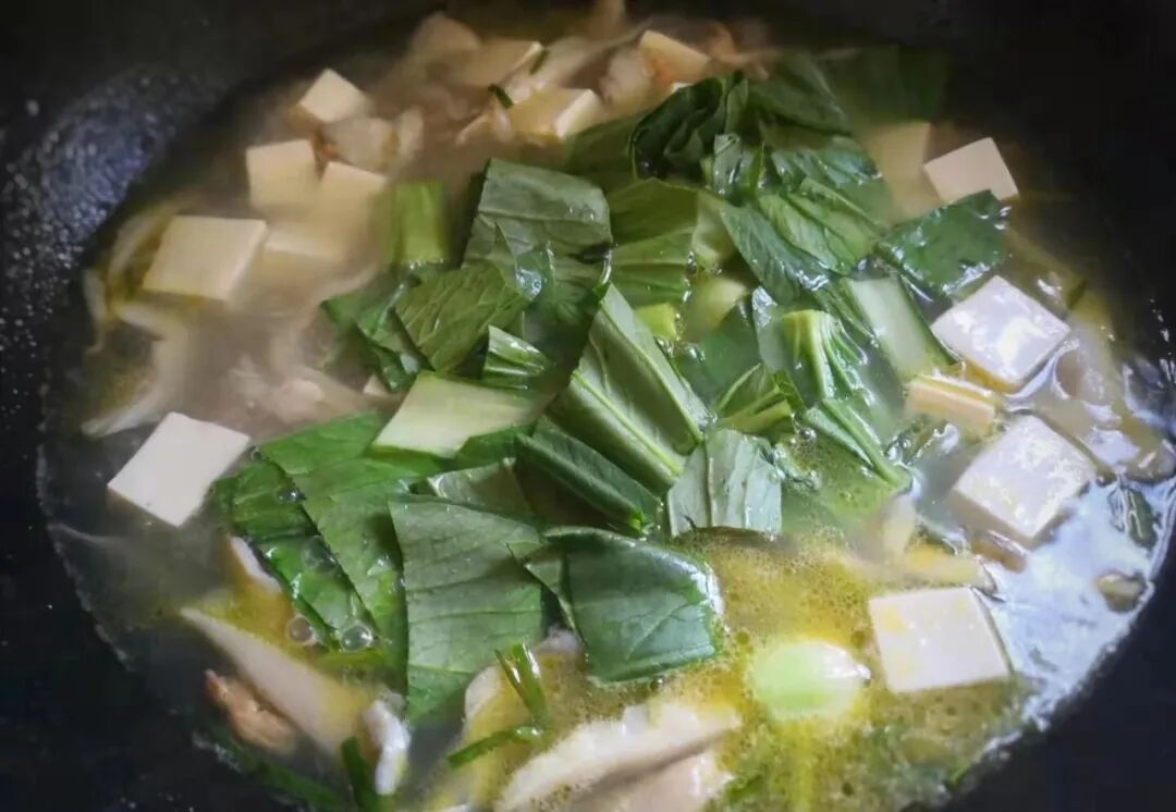 秋季天气渐渐转凉了,更需要一些汤汤水水来暖胃和暖心对,喝一碗汤水也能有保证必要的营养,这是最简单的家常汤。  【青菜蘑菇豆腐汤】食材:蘑菇1朵、青菜2颗、豆腐1块、干虾仁少量、1勺盐、半勺鸡精、水淀粉少量。 做法: 1、食材都准备好。 2、把蘑菇洗净,撕成小朵。 3、青菜和豆腐洗净,小青菜切成段,豆腐切成小块。 4、锅内放入少量油,放入少许葱花炒香,把蘑菇下锅,煸炒到蘑菇变软。 5、倒入适量水清水烧开,加入干虾仁。 6、接着放入豆腐块,煮两5分钟。 7、放入青菜段煮软。 8、加入1勺盐,半勺鸡精,再加入少许水淀粉,烧开即可。 9、一锅热气腾腾的鲜美的蘑菇豆腐青菜汤出锅了,喝一口比肉汤还要鲜美呢。