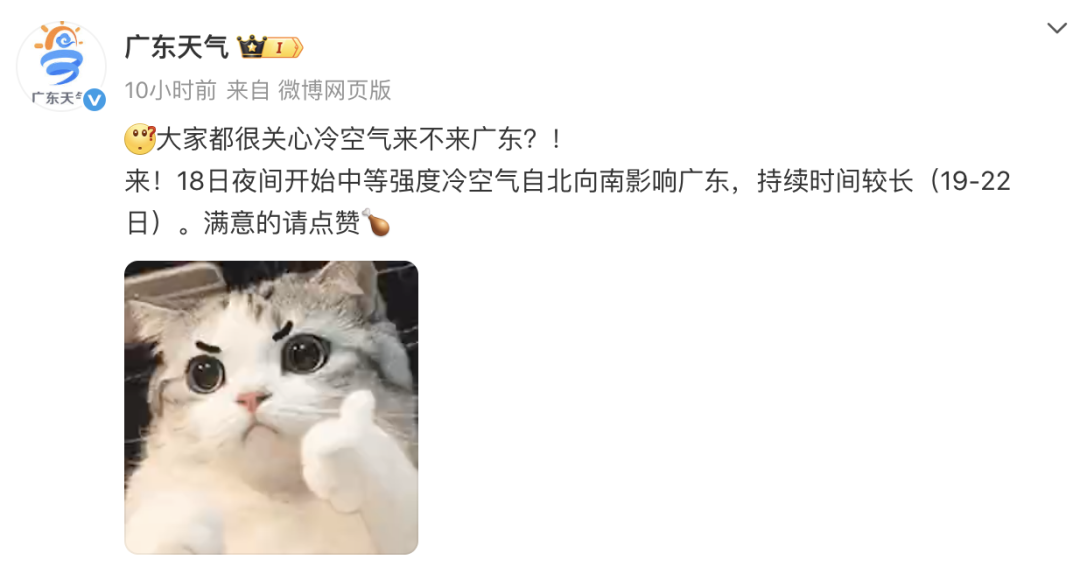 虽然已经是10月中旬了 但广东天气的主旋律 依然是晴热! 夏天超长待机中 到底何时才会迎来降温? 什么时候才能入秋? 据@广东天气, 19日起, 广东开始受中等强度冷空气影响, 气温逐日下降!