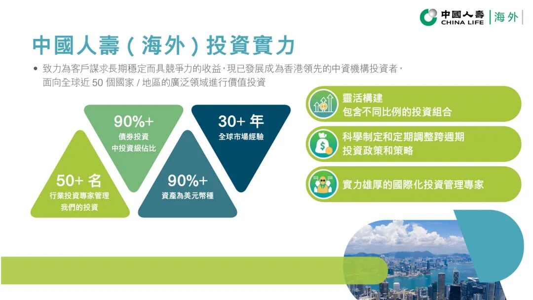 中国人寿(海外)凭借强大实力和全球投资视野,为客户提供了一种能穿越周期、应对不确定的资产方案。