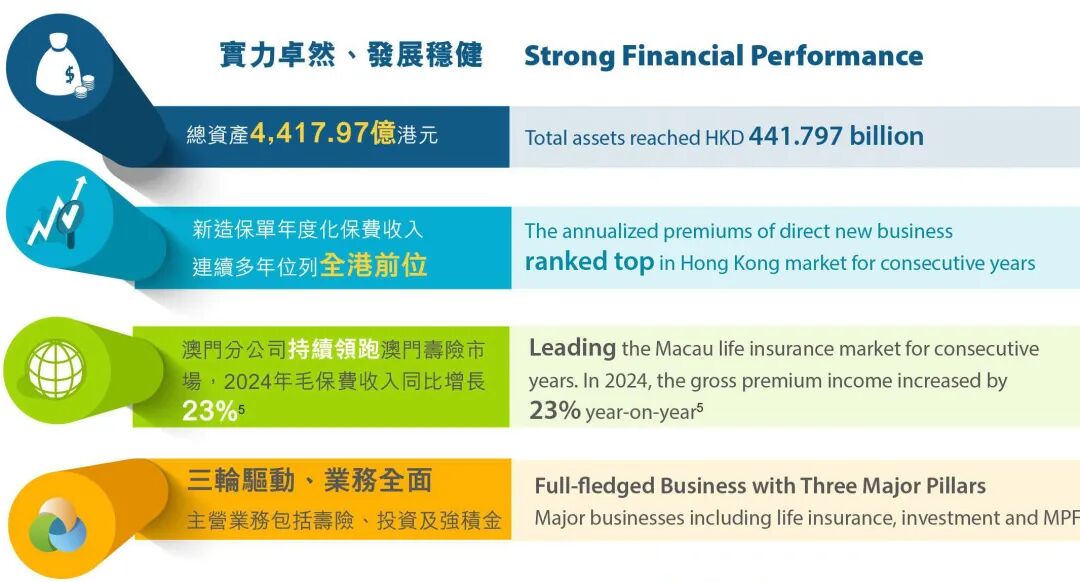 截至2025年上半年,中国人寿(海外)的总资产达4,417.97亿港元³,其中投资资产规模为4,151.37亿港元³,可以说是有底气、有实力。
