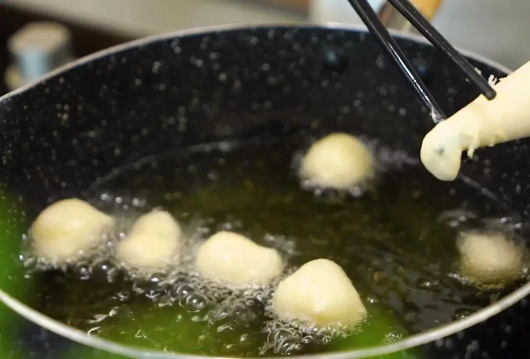今天用2个鸡蛋一碗面来给大家分享一道家常小吃“鸡蛋泡泡”,用来当早餐非常的棒,这道小吃简单易做,外脆里香,比油条简单还好吃,就是新手也能一次成功,如果早上赶时间可以晚上把面和好,早上早起十分钟就可以搞定全家人的早餐。 做法: 1,碗中打入两个鸡蛋,加入一勺白糖,3克酵母,用筷子把鸡蛋打散搅拌混合均匀。 2,再加入300克的面粉,少量多次的加入温水,随到随搅拌,全程不需要下手揉面,一直用筷子搅动就可以。 3,最后搅拌成没有干面粉黏稠的面糊即可,盖上盖子放到温暖的地方醒发2倍大。如果早上起来想赶时间也可以提前一晚把面和好。 4,鸡蛋面糊醒发好之后加入一把切好的葱花,一点食盐和胡椒粉,用筷子充分搅拌混合均匀。 5,准备好一个裱花袋放入杯子中把口撑开,倒入搅拌好的鸡蛋面糊,再把裱花袋的底部剪开一个小口。 6,起锅烧油,油温烧到下入筷子冒小泡泡,一手拿着裱花袋挤出,另外一只手用筷子把挤出来的面糊夹断,大约5秒钟左右鸡蛋泡泡就会变大飘起。 7,飘起后用勺子不断的推动使鸡蛋泡泡受热均匀,大约2分钟左右炸到鸡蛋泡泡表面金黄酥脆即可控油捞出。 我们的鸡蛋泡泡就做好了,金黄诱人外酥里软,比油条简单还好吃,就是新手也能一次成功,吃的时候也可以再蘸上一点番茄酱味道更棒。