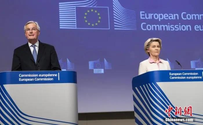 布鲁塞尔时间24日下午4时左右,欧盟委员会主席冯德莱恩携欧盟首席谈判代表巴尼耶举行记者会,宣布正式与英国达成“脱欧”贸易协议(全称欧盟-英国贸易与合作协议),以此界定明年1月1日英国结束“脱欧”过渡期后的欧英关系。