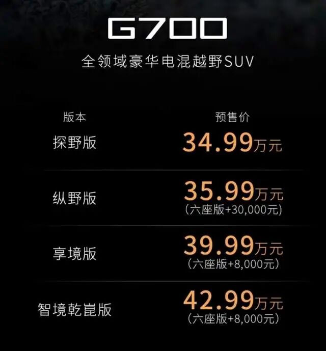 它就是预售价格区间34.99万——43.79万的捷途纵横G700。