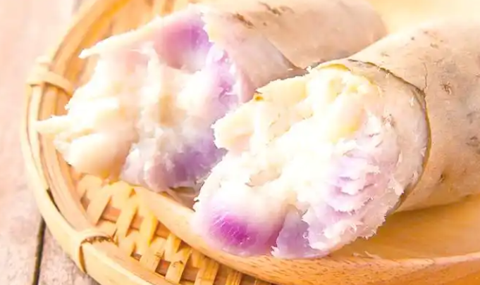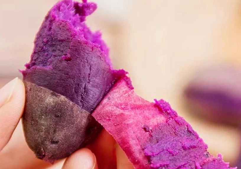 紫红皮,薯肉外围是一层黄白色肉,中间则点缀着淡紫红色的“斑点”,煮熟后番薯的皮和中间的“斑点”都会变成淡紫色,因此而得名一点红,颇具特色。