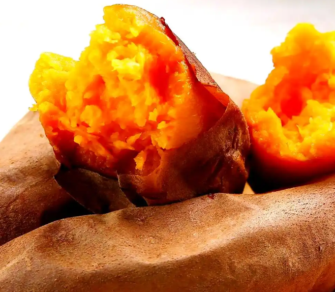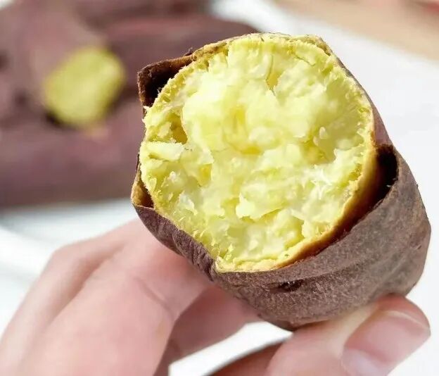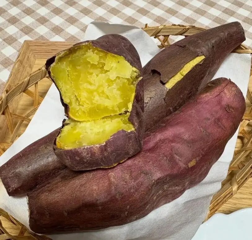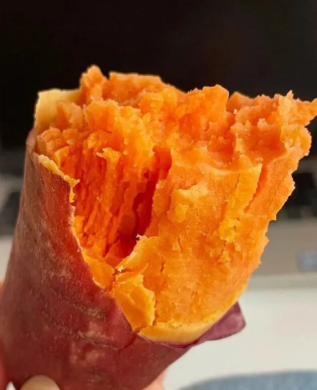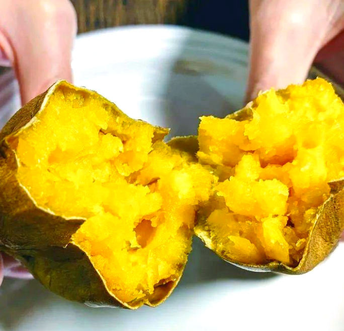 鸣门金时红薯在日本非常受欢迎,以其高甜度和冰糖心而闻名。它的色泽比普通红薯更偏黄亮。这种红薯的特点是质地细腻,水分较低但非常扎实,饱腹感强。相比高系14的“粉糯香甜”,鸣门金时红薯的口感更上一层楼。