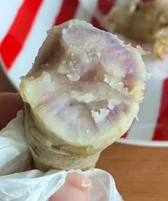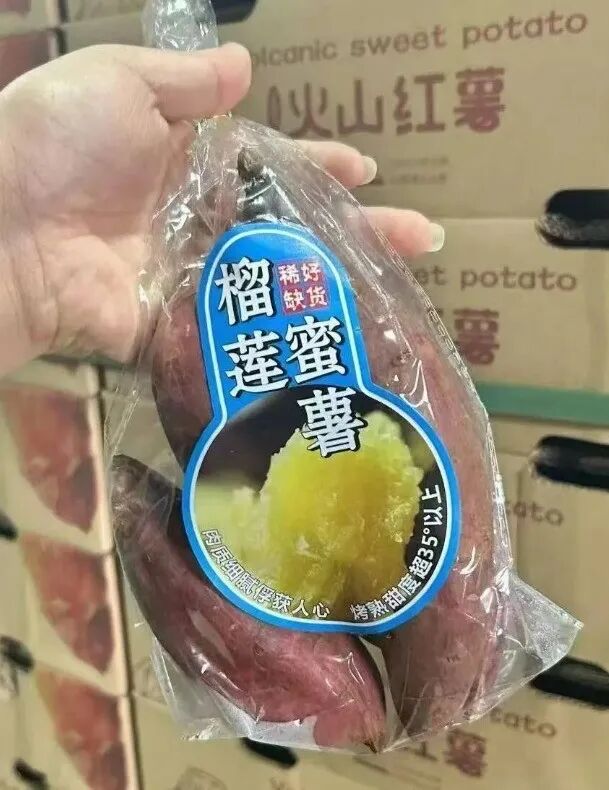 榴莲蜜薯,别被这个名字迷惑了,它可没有一丝榴莲气味儿,吃起来却有着榴莲一样的软糯香甜。这个品种源于日本,颜色金黄澄亮、甜度很高、口感湿润。该品种由广东湛江引进,2024年在广西东兴市江平镇试种成功。从外表上看,榴莲蜜薯确实与普通蜜薯无异,皮色较浅,但其肉质却泛着紫红。经烘烤后颜色金黄,香甜如蜜,故称榴莲蜜薯,一口下去,满是软糯的口感和丰富的香气。