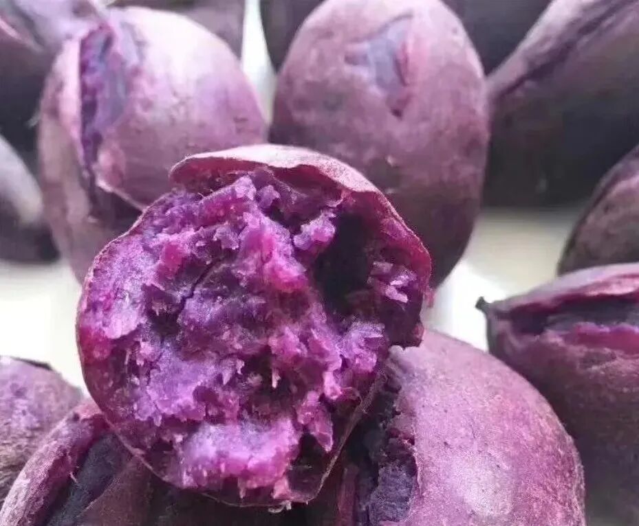 长纺锤形,薯皮光滑,紫黑光亮,薯肉深紫色。非常营养健康,富含丰富的花青素,煮着吃最好!煮着吃最好!煮着吃最好!口感会糯一些,蒸着吃比烤着吃要好吃一些。