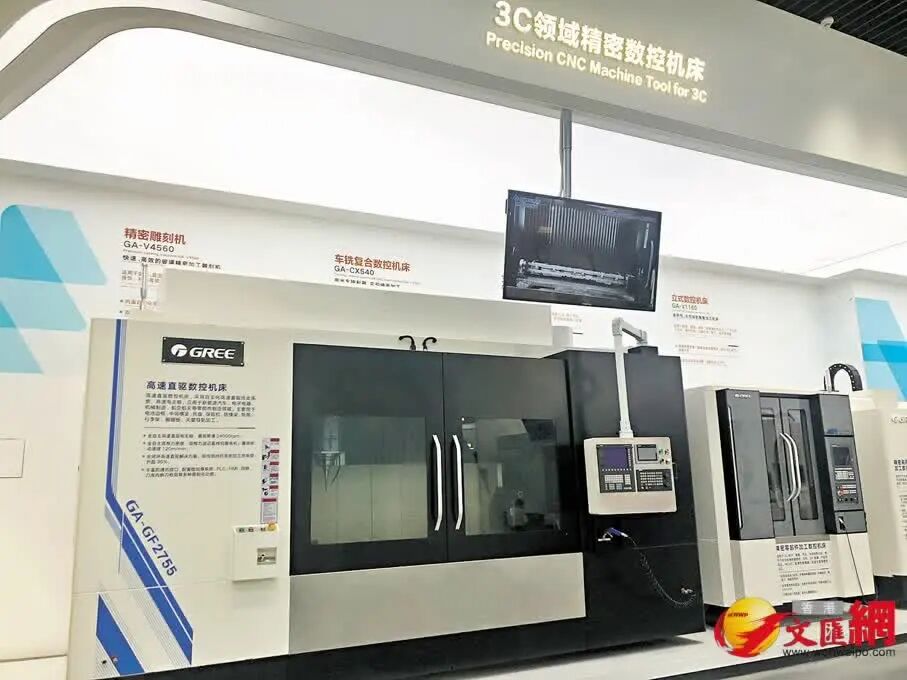 数据显示,珠海高新技术企业总量目前已突破2,950家,规模以上高新技术企业对工业增加值的贡献率超过70%。香港文汇报记者在走访珠海高新区金山软件园时获悉,今年新推出的「金山政务AI一体机」集AI算力资源、政务办公大模型与智慧办公应用于一体,实现了软件、硬件、算力的全链路国产化。此外,以华发智造产业园、港湾1号科创园等园区为载体的新兴产业,也正在珠海高新区「聚链成群」。据统计,珠海高新区以约占全市8%的土地,聚集了珠海40%的上市公司和超四分之一的国家高新技术企业,其中人工智能相关企业已突破140家。在智能装备展区,格力电器研发的精密数控机床等展示。( 記者方俊明 )