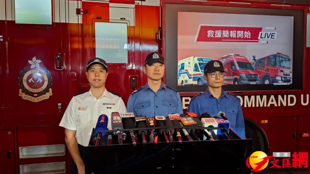 消防处消防区长卢瑞生昨日表示,消防处在下午4时24分接报,4分钟后到场。当时正在进行维修工程的华懋大厦外墙棚架起火,而且火势蔓延迅速,火屑亦影响到隔邻大厦,8分钟后将火警升为三级,消防处调配额外的资源灌救。 消防处和警方晚上举行火警简报会。香港文汇报记者邓伟明摄 出動無人機監察火勢 是次行动中,消防处共出动36辆消防车、15辆救护车及184名消防员和救护员,动用4条灭火喉、4队烟帽队灌救,以及升起两条钢梯水塔在大厦外围射水降温,并出动无人机监察火势。 据观察,火势主要集中在大厦外墙,未有严重波及单位内部。下午5时46分,火势受到包围,至晚上7时许受到控制,晚上9时13分大致将火救熄。