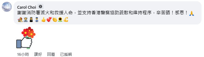 184名消防员、4条水喉、2台云梯、1架无人机=1小时24分控制火势。网友表示:堪称救援的「王牌阵容」,展现了专业的「雷霆手段」!评论区纷纷为消防队的快速救援点赞! 据了解,在火警中有58人自行疏散到安全地方,其间消防接获两宗求助。在华懋大厦23楼,有1男2女被困,其中男子左手擦伤及吸入浓烟呼吸困难需要送院,另在3楼至4楼梯间有一名男子头部受伤和吸入浓烟,被救出送院。 另外一宗求助位于火场隔邻大厦,一名女保安员在15楼厕所内被救出。而消防员在同座大厦一楼升降机内救出一名被困男子。