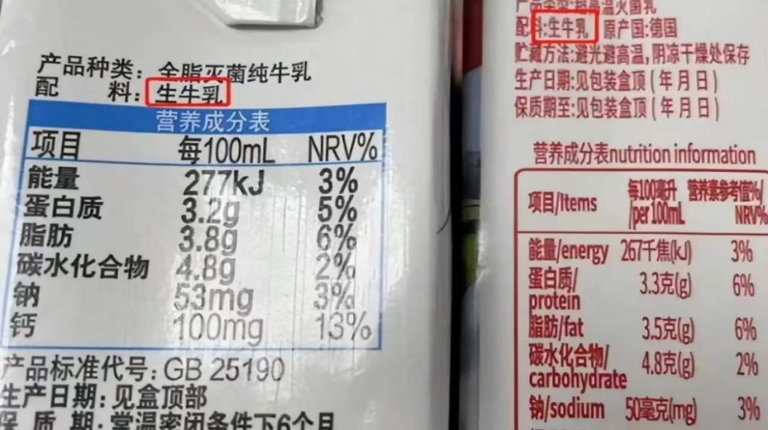 以乳粉进行复原的灭菌乳在口感风味上与仅用生乳为原料生产的产品有一定的区别,消费者在购买时可根据自己的喜好看标签标示的内容进行选择。