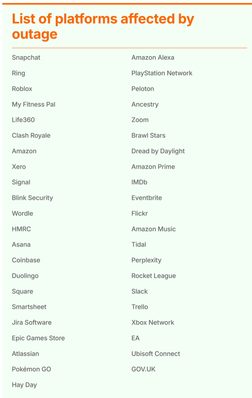 此次AWS故障不仅影响了航空公司,许多其他知名企业和在线服务也受到了波及,导致大量用户体验中断和访问困难。