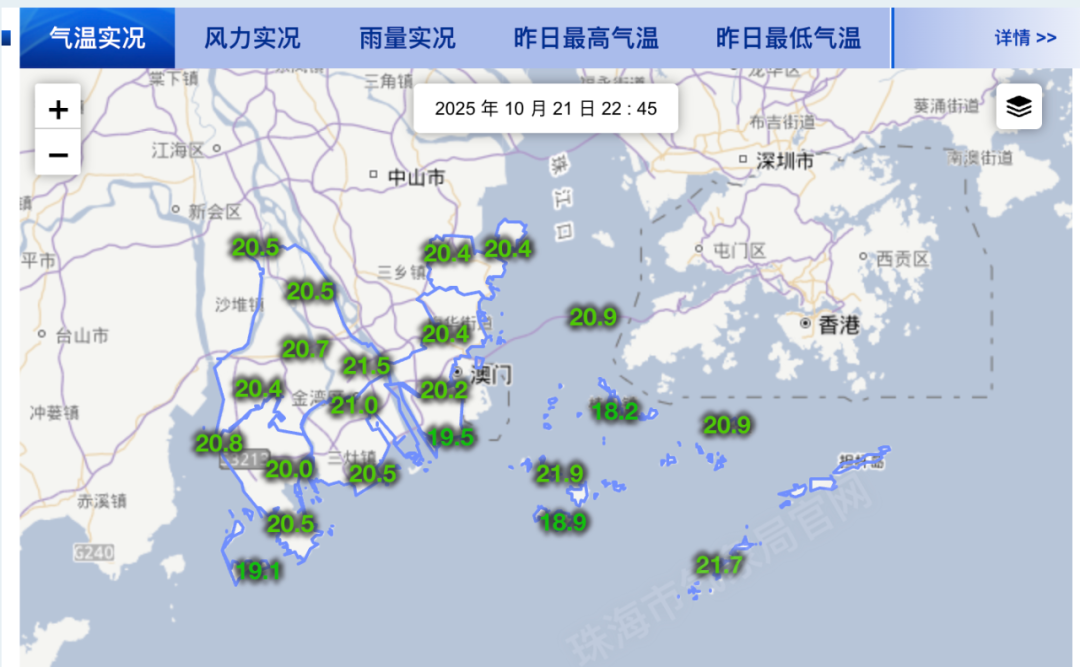 今年第24号台风“风神”和冷空气共同影响,21日至22日,广东省沿海海面将出现持续大风,珠海气温大降。