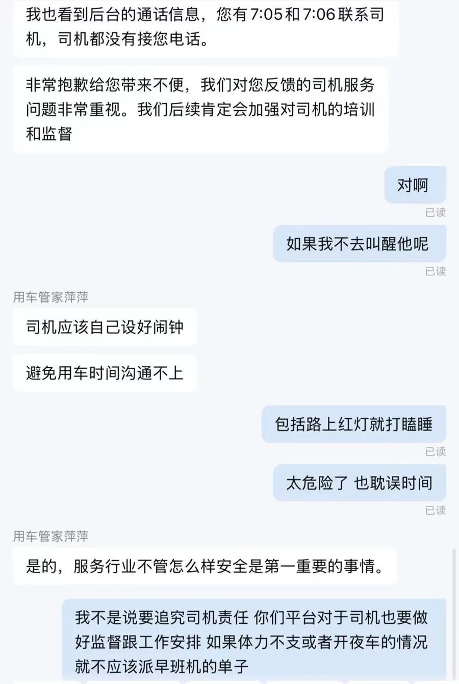 上海市民陆女士向“新民帮侬忙”投诉 10月20日清晨 她通过某知名旅行平台预约的 送机专车司机不仅迟到、失联 还接连“上演”小马路上停车酣睡 等红灯不断瞌睡等 一系列匪夷所思的操作 更是因走错路而人为增加行车时间 险些让她错过航班