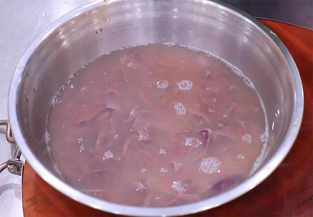 1.准备猪肝一块,放在清水中浸泡一个小时左右,去除里面的血水和毒素,把上面的筋膜去除,切成3毫米左右的薄片,切好以后先用清水洗一遍,再放入啤酒中,加入适量的清水,一勺食盐浸泡10分钟,啤酒能够起到抑菌去腥的作用。
