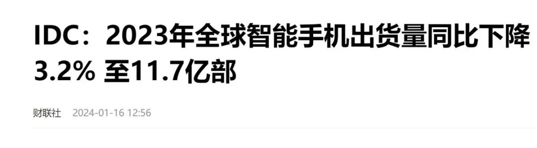 据IDC数据,2023年全球智能手机出货量同比下滑3.2%, 行业寒冬持续蔓延,消费电子市场难见回暖迹象。