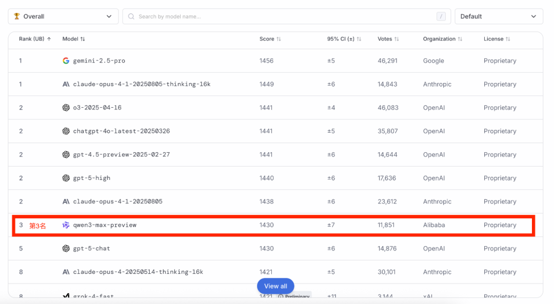 此前,在阿里云栖大会亮相的Qwen-Max模型,在权威的LMArena文本排行榜上,超过GPT-5,进入全球前三。Qwen也是目前少有的能在国际主流榜单上与GPT系列模型掰手腕的中国模型。